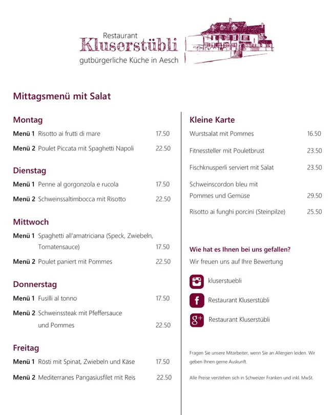 Wir freuen uns auf einen inspirierenden Netzwerklunch im KLUSERSTÜBLI
