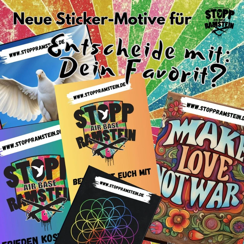 Neue Sticker für die Kampagne Stopp Air Base Ramstein